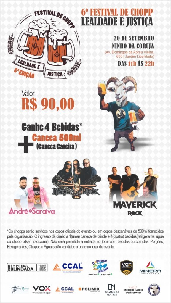 Venha participar do 6º Festival de Chopp da ARLS Lealdade e Justiça.